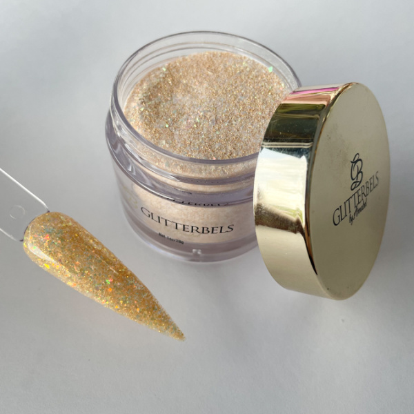 De kleur acrylpoeder van Glitterbels is geen strength powder. Dat houdt in, dat deze ingekapseld moet worden met een clear acryl poeder (Glass slippers) om de nagel van stevigheid te voorzien.