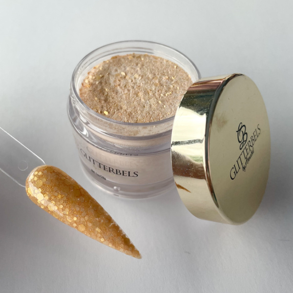 De kleur acrylpoeder van Glitterbels is geen strength powder. Dat houdt in, dat deze ingekapseld moet worden met een clear acryl poeder (Glass slippers) om de nagel van stevigheid te voorzien.