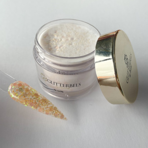 De kleur acrylpoeder van Glitterbels is geen strength powder. Dat houdt in, dat deze ingekapseld moet worden met een clear acryl poeder (Glass slippers) om de nagel van stevigheid te voorzien.