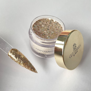 De kleur acrylpoeder van Glitterbels is geen strength powder. Dat houdt in, dat deze ingekapseld moet worden met een clear acryl poeder (Glass slippers) om de nagel van stevigheid te voorzien.