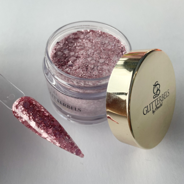 De kleur acrylpoeder van Glitterbels is geen strength powder. Dat houdt in, dat deze ingekapseld moet worden met een clear acryl poeder (Glass slippers) om de nagel van stevigheid te voorzien.