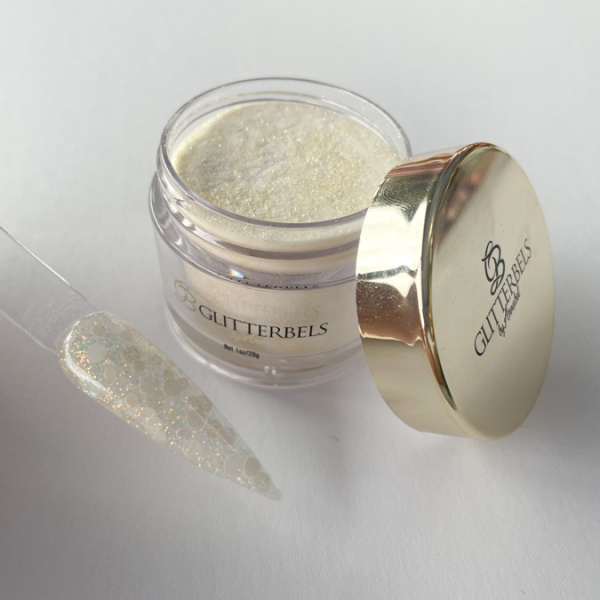 De kleur acrylpoeder van Glitterbels is geen strength powder. Dat houdt in, dat deze ingekapseld moet worden met een clear acryl poeder (Glass slippers) om de nagel van stevigheid te voorzien.