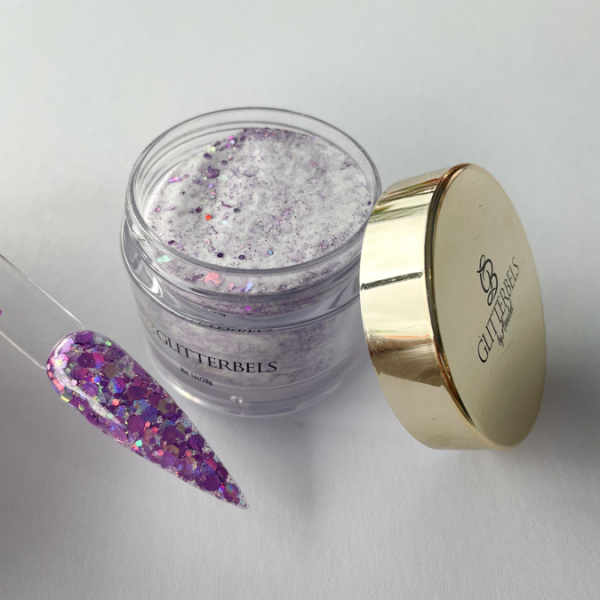 De kleur acrylpoeder van Glitterbels is geen strength powder. Dat houdt in, dat deze ingekapseld moet worden met een clear acryl poeder (Glass slippers) om de nagel van stevigheid te voorzien.