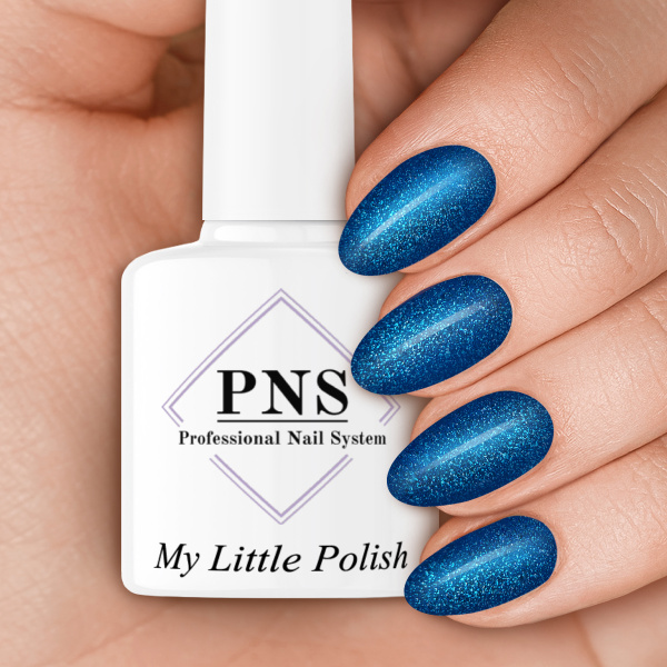 Blauwe gellak van het merk PNS in de My Little Polish (MLP) lijn, met een glitter, uit de “Ocean” collectie.